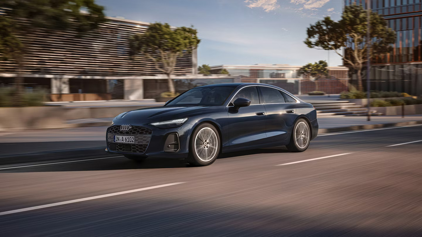 The Audi A6 boasts a sculpted exterior and a progressive design with a long wheelbase and short overhangs. The wide, low-slung Singleframe grille, Matrix LED headlights, and powerfully contoured air inlets exude bold elegance.