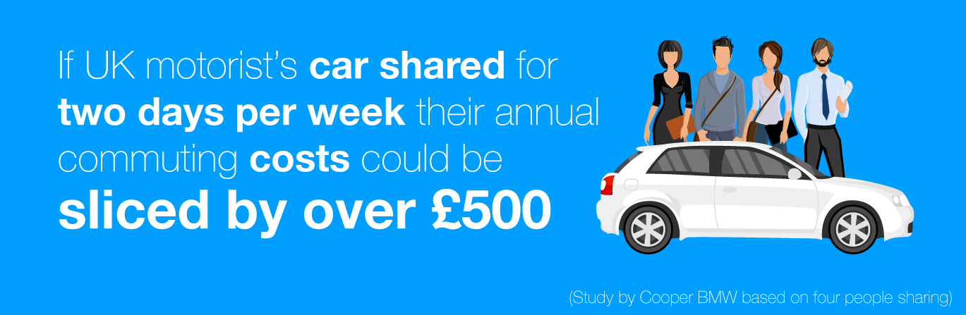 If UK motorists shared for just two days a week, for a year, they could each cut their costs by £500. That’s the equivalent price of a return flight to the Maldives.