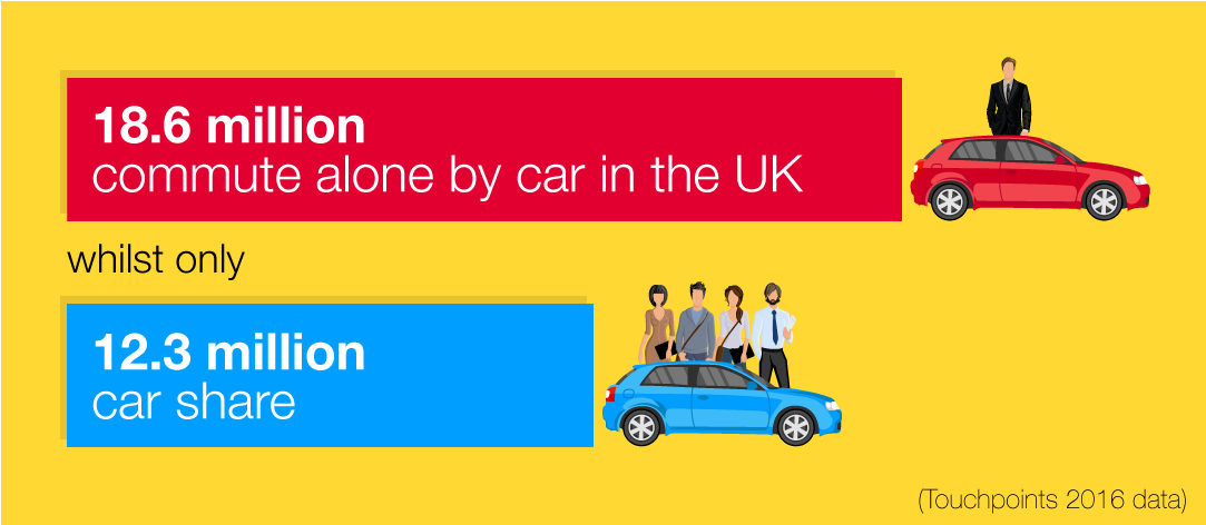 While 18.6 million Brits drive alone each morning and evening, some 12.3 million share a ride.