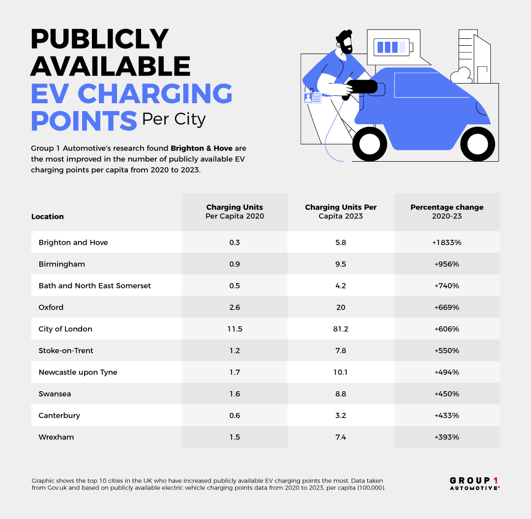 Which UK City Has Increased The Amount of Publicly Available EV Charging Points The Most?