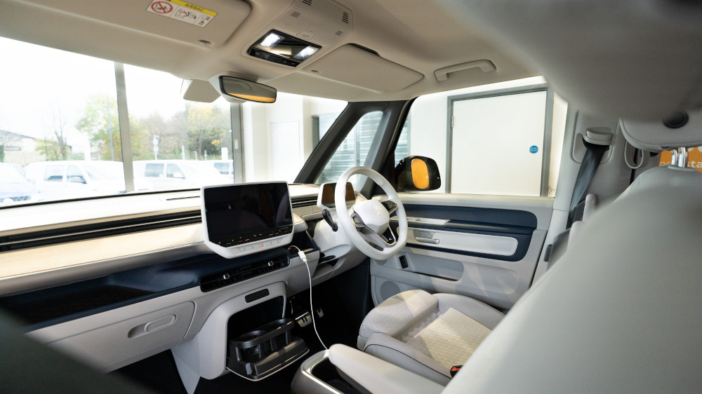 VW’s focus on being carbon neutral from manufacture to delivery is a priority for the brand and part of this is the removal of leather in the cabin, instead the VW ID.Buzz features sustainable materials with recycled plastic within them.