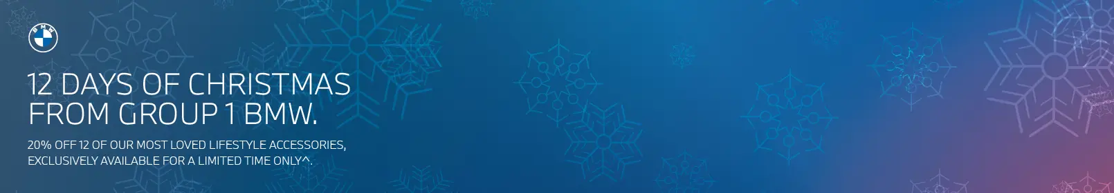 Terms and conditions apply. Offer prices applies to retail customers at participating Group 1 BMW dealerships, is subject to availability and cannot be used in conjunction with any other promotion. 12 days of Christmas campaign is valid from Monday 1- Friday 12 December 2025, 20% off RRP prices on selected parts and accessories on instore purchases only. Offer may be withdrawn at any time. FlexiPay is an unregulated credit agreement. We do not charge a set-up fee or interest. Late payment fees will apply. Borrowing more than you can afford, paying late or missing payments may impact your credit score and your ability to borrow in the future and may incur a one off payment fee of £20. Subject to status, 18+, UK residents only. T&Cs apply.