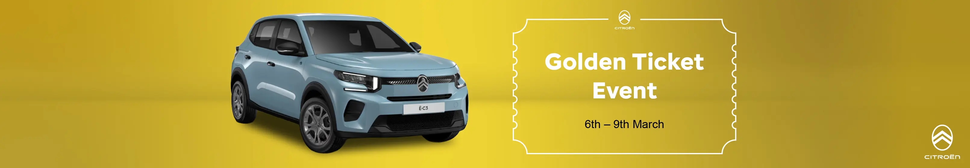 Experience something truly special. From Friday 6th to Monday 9th March 2026, Group 1 Citroën is hosting an exclusive Golden Ticket Event - and you’re personally invited.