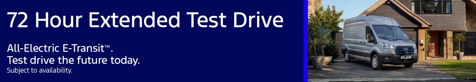 Choosing the right vehicle for your business is essential - that’s why we’re offering an extended test drive so you can take time to experience our All-Electric E-Transit and discover how you could make the switch to electric.