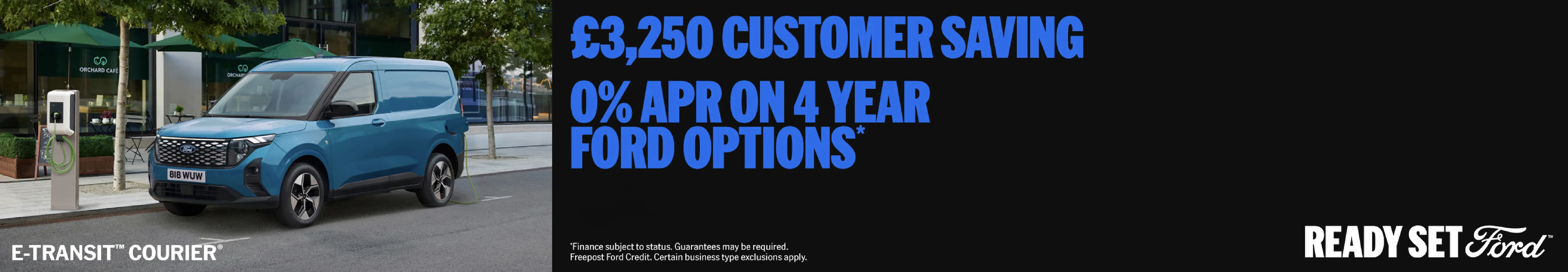 What’s more, until 30th June 2026, the E-Transit Courier is available with a £3,250 customer saving and 0% APR on 4 Year Ford Options*.