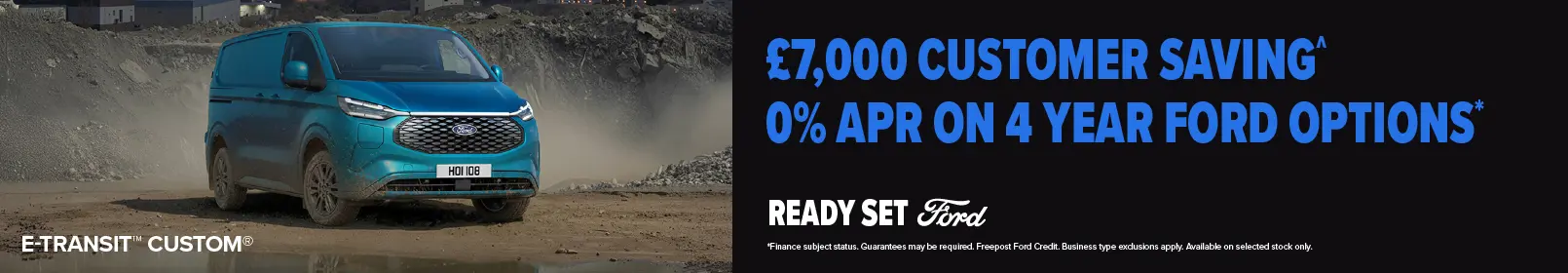 And what’s more, until 31st March 2026, the All-Electric E-Transit Custom is available with 0% APR* on 4 Year Ford Options and a £7,000 Customer Saving^^.