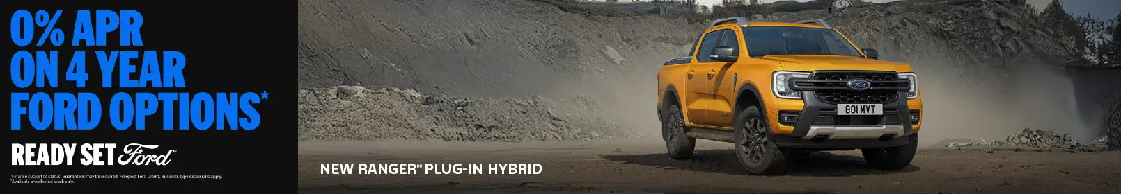 Until 31st March 2026, New Ranger Plug-in Hybrid is available with 0% APR* on 4 Year Ford Options.