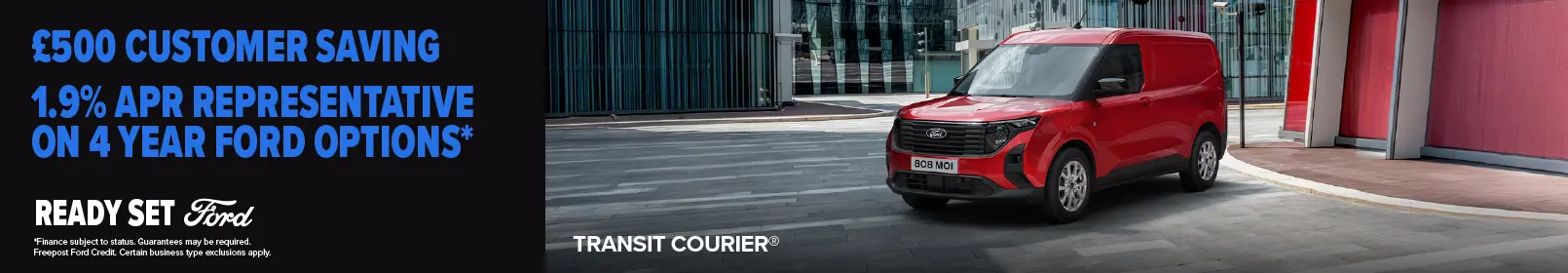 What’s more, until 31st March 2026, the Transit Courier is available on 4 Year Ford Options with low rate finance of 1.9% APR Representative* and a £500 Customer Saving^^.