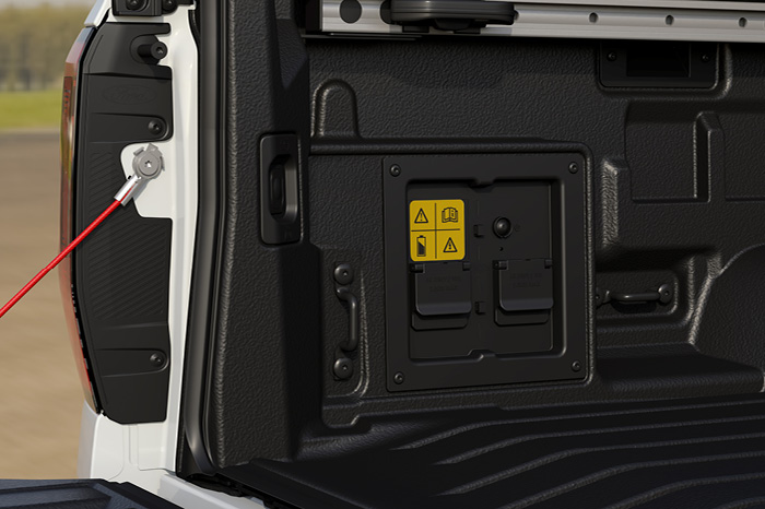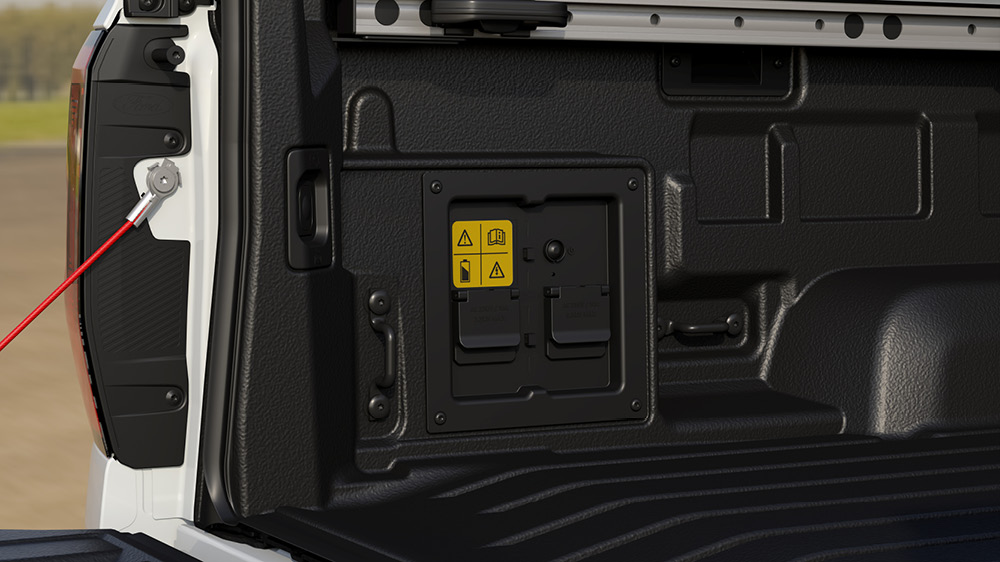 A mobile power source, offered in two variants, allows you to leave the generator behind and save on load space. The standard 2.3 kW (10 amp) system is perfect for recharging batteries and powering most electric hand tools. Meanwhile, the 6.9 kW (16 amp) option provides extra power, capable of running heavier equipment such as grinding tools, air-conditioning units, camping stoves, EV dirt bikes or it will even run appliances such as an air compressor directly from the load box.