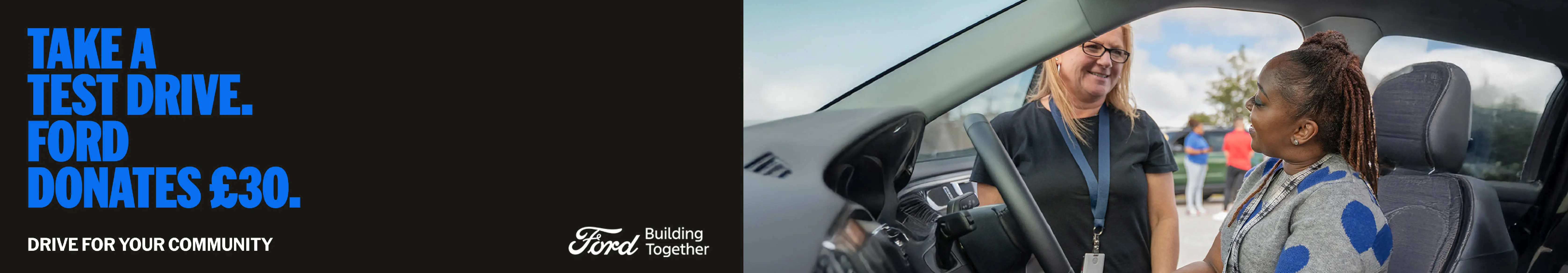 *NO PURCHASE NECESSARY. Must be 18 years of age or older with a valid driver’s licence and valid automobile insurance. Donation of £30 per valid test-drive, up to 200 test-drives, for a total donation of £6,000 per event. Limit one (1) donation per household. Organisation is selected at the discretion of the participating Ford Dealership.