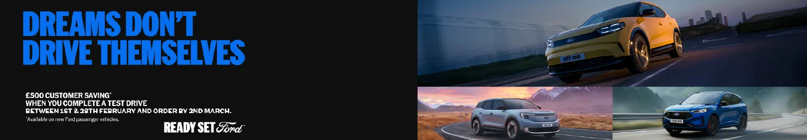 If you’re unable to make it to our Test Drive Event, don’t worry. Simply complete your test drive between 1st–28th February and order your new Ford by 2nd March to receive a £500 customer saving^. It’s the perfect time to choose a Ford that matches your lifestyle, ambitions, and sense of adventure.