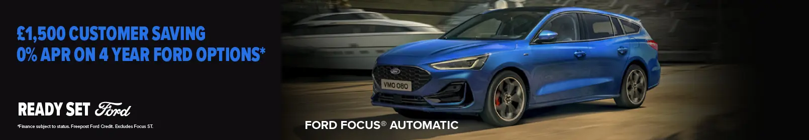 Until 30th June 2026, Focus is available with 0% APR* on 4 Year Ford Options and £1,500 Customer Saving^.
