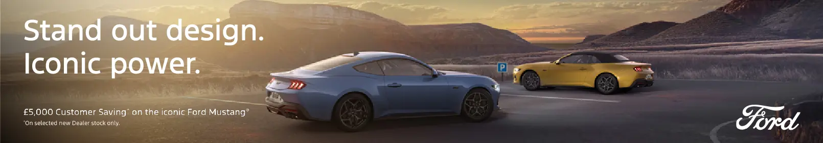| Until 31st December 2025, the Ford Mustang is available with a £5,000 customer saving on selected new Dealer stock. It is also available with low rate finance – 4.9% APR representative on 3 year Ford Options*. | ||