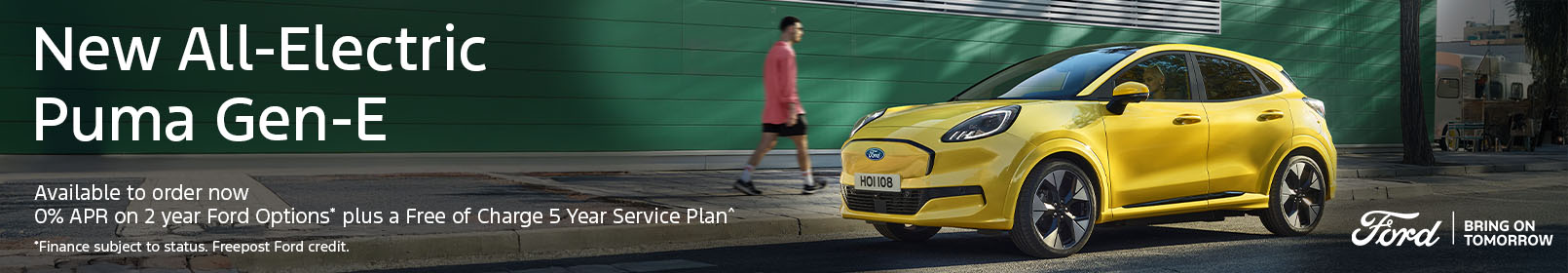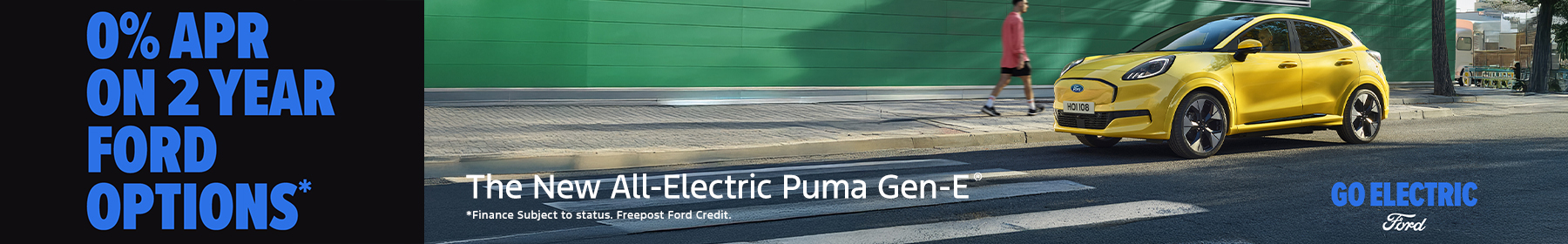 Even better, until 31st December 2025, New All-Electric Puma Gen-E is available with 0% APR* on 2 year Ford Options.