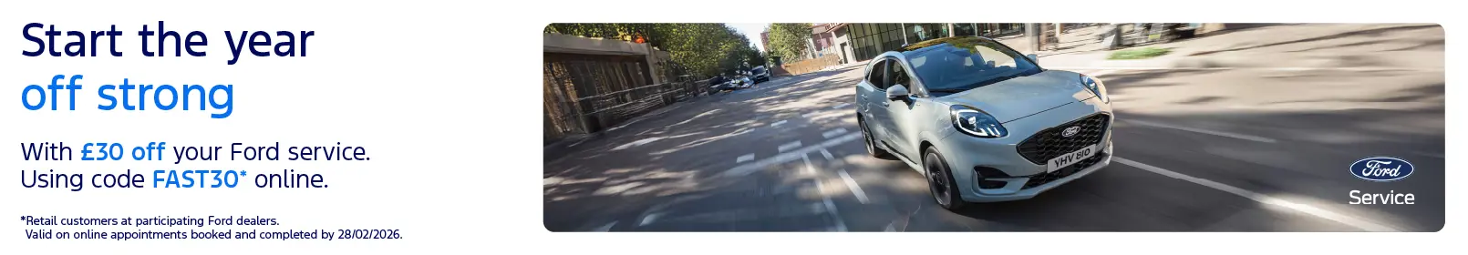 Retail Customers only. Available for bookings made via the Ford website or Ford app only. Valid for appointments made and completed by 28th February 2026.