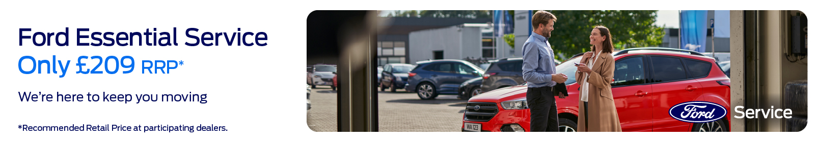 [†]Ford Essential service and repairs are available at participating Ford Dealers for older passenger cars and commercial vehicles outside their warranty with up to and including 2.5L engines and are applicable to retail customers only. All published prices are recommended retail prices and include parts, labour and VAT. Mustang, RS models and LPG derivatives are excluded.