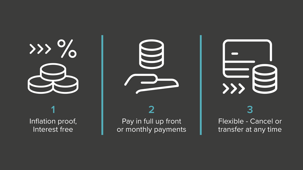 ✔ Inflation proof – the price you pay is fixed protecting you from cost increases.