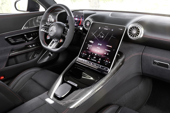 A range of features ensure an excellent experience such as the electrically extendable rear spoiler which provides extra downforce, the performance orientated all-wheel drive system, AMG rear-axle steering which increases the agile feeling of the car and optional AMG ceramic high-performance brakes to provide reliable braking force.