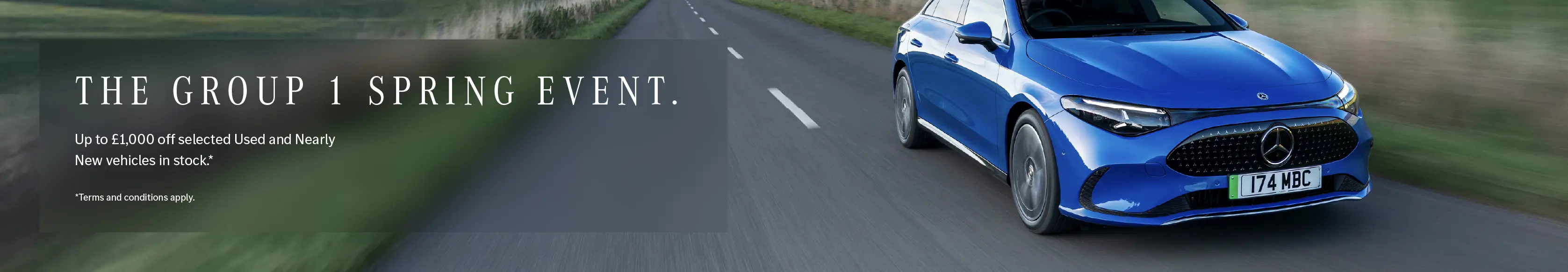 *Up to £1,000 saving on selected Used and Nearly New vehicles across participating Group 1 Automotive retailers during the Spring Event from 10 - 19 April 2026. Savings apply to selected vehicles in Group stock and vary by model. Offer valid on retail purchases ordered between 10–19 April 2026 and delivered by 26 April 2026. Vehicles are subject to availability and may be withdrawn without notice. Available to retail customers only, aged 18 or over. Finance subject to status and availability, terms apply. Group 1 Automotive reserve the right to withdraw, amend, or extend the offer at any time. Savings applied at the point of order; no cash alternative. Images and vehicles shown are for display purposes only.