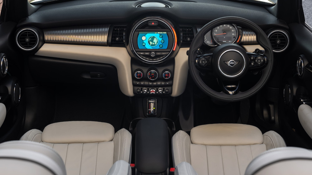 Inside, the MINI Cooper Convertible seats four in comfort with high-quality materials. The boot offers between 160 to 215 litres of space, ideal for spontaneous weekend getaways. Enjoy the advanced technology options, including a digital cockpit and a high-performance audio system.