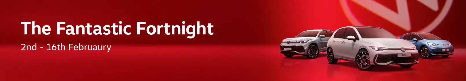 Fantastic Fortnight Event Period Offers are valid during the Volkswagen Fantastic Fortnight and apply to vehicles ordered by 16 February 2026.