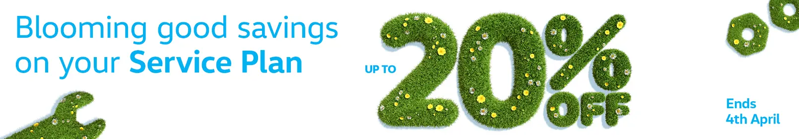 Enjoy blooming good savings on your Service Plan this Spring, with 20% off All-in Service Plans, and 15% off Standard and ID. Range Service Plans* until 4th April.