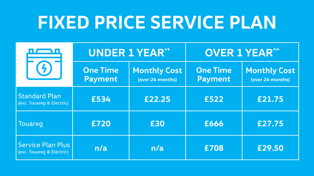 ^Price based off Volkswagen National Fixed Price Servicing for cars over 3 years old. Participating Volkswagen UK Retailers only.