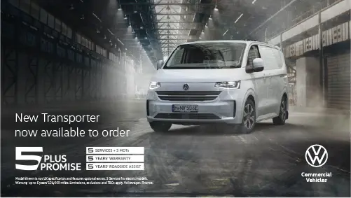 Full T&Cs Apply: *For diesel and eHybrid models, covers first 5 consecutive services, limited to 5 x Oil & Inspection Service, 5 x Pollen filters, 3 x MOTs. For electric models, covers first 3 consecutive services, 3 x Pollen filters, 3 x MOTs. Additional work, including wear and tear, is excluded. Warranty: earlier of 5 years or 124,000 miles. Servicing must be carried out in line with the requirements of the service schedule and all servicing and warranty work must be carried out at a Volkswagen Commercial Vehicle Authorised Repairer. Warranty exclusions apply (including shorter warranty period for components subject to wear and tear, mechanical adjustments (6 months/6,500 miles) and windscreen (1 month/600 miles). Roadside assistance: excludes costs of parts, garage, labour or other costs in excess of specified limits. Other limitations & exclusions apply. See Roadside Assistance Handbook for full details. Servicing & MOTs administered by Volkswagen Commercial Vehicle Financial Services. Warranty administered by Volkswagen Commercial Vehicles UK. Roadside assistance administered by AA.