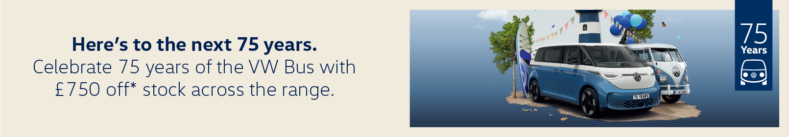 Celebrate 75 years of the VW Bus with £750 off* stock across the range