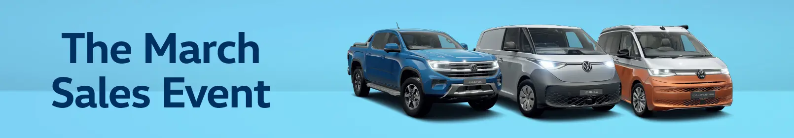 Get £1,000 off all new vehicles* with the March Sales Event. Available across the full range, don’t miss out. Whether you’ve got your eye on a Transporter panel van, California camper van, Multivan or Amarok pick-up, you can take advantage of this offer on top of all our existing offers until 31st of March, 2025.